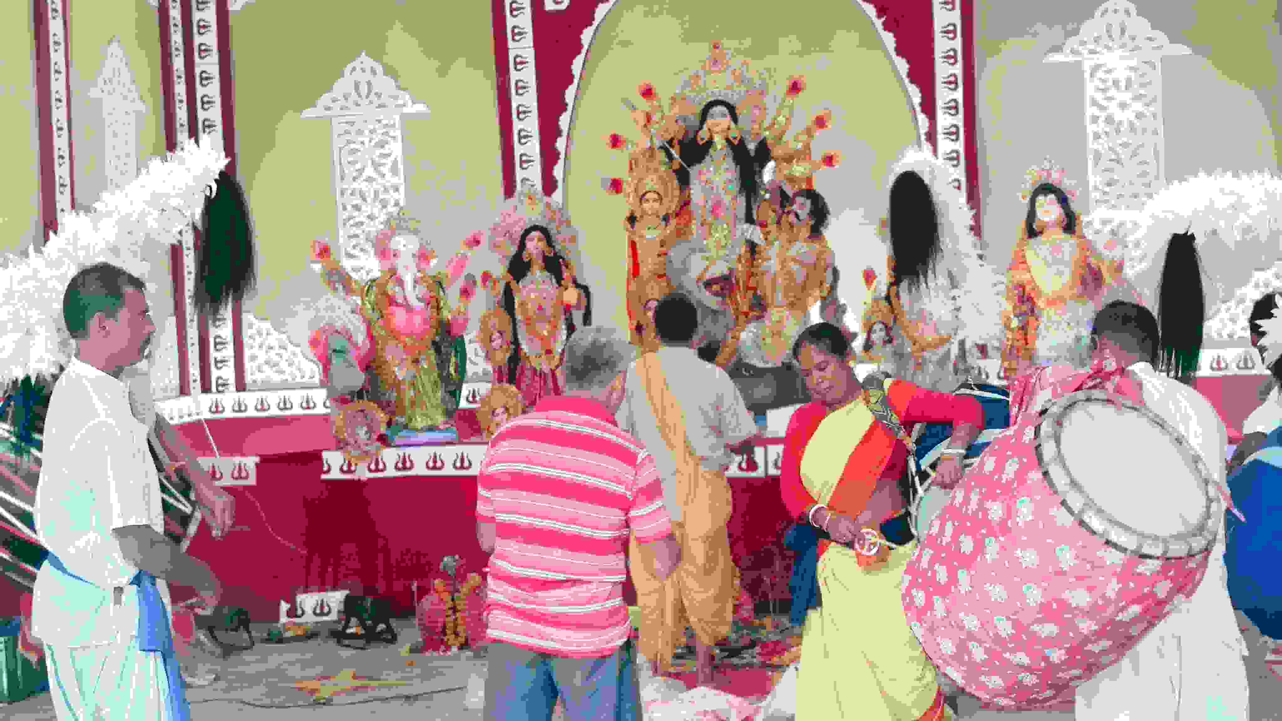 सीतापुर : आँख अस्पताल परिसर में आयोजित श्री श्री सार्वजनिन दुर्गोत्सव में महासप्तमी पूजा पश्चिम बंगाल के मिदनापुर से पधारे पुरोहित दुर्गा पदो चक्रवर्ती द्वारा मंत्रोउच्चारण शंख एवं घंटा व धाक की ध्वनि के साथ विधि विधान के साथ संपन्न कराया। वहा पर उपस्थित श्रद्धालु महिलाओ ने केले के वृक्ष को स्थापित कर वस्त्र पहनाया गया। श्रद्धालुओ द्वारा माँ को पुष्पांजलि अर्पित की गयी। दोपहर को भण्डारे का आयोजन हुआ सायकाल की बेला में माँ दुर्गा की आरती पुरोहित दुर्गा पदो चक्रवर्ती ने पंचमुखी दीपक, कपूर से भरा दीपक, धूपची, जल से भरा हुआ शंख, तौलिया, हाथ वाला पंखा, रेशे वाला पंखा, पान व सुपाड़ी से आरती की।तत्पश्चात माँ को हलुवा, नारियल व विभिन्न प्रकार के लड्डुओं का भोग लगाया गया। दिनाक 30 सितंबर की शाय 8 बजे राष्ट्रीय सेवा परिषद व एस जे डी इंडिया फाउंडेशन के द्वारा समाज को सन्देश देने वाली नाट्य सच का आयना की प्रस्तुति की जाएगी इस दौरान एन एन चटर्जी, रंजीत दास, संजीव दास, आकाश राय, विश्वजीत पोले, श्यामल दत्ता, पंकज मुखर्जी, दीपक विश्वास, शांतनु दत्ता, निमिष दास, प्रदीप राय, नीता मुखर्जी, नीता दास, श्यामली पोले, अपर्णा दास, गीतिका दत्ता, देवो श्री दास, वंदना राय, इला दत्ता आदि उपस्थित रहे।